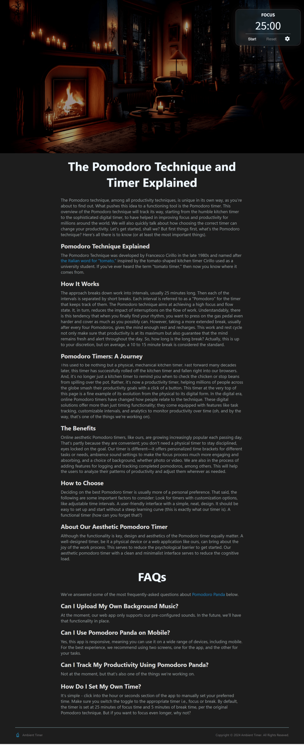 More of a personal project, we designed and developed an aesthetic timer that uses the Pomodoro technique to help us focus and stay productive when working on client's projects.