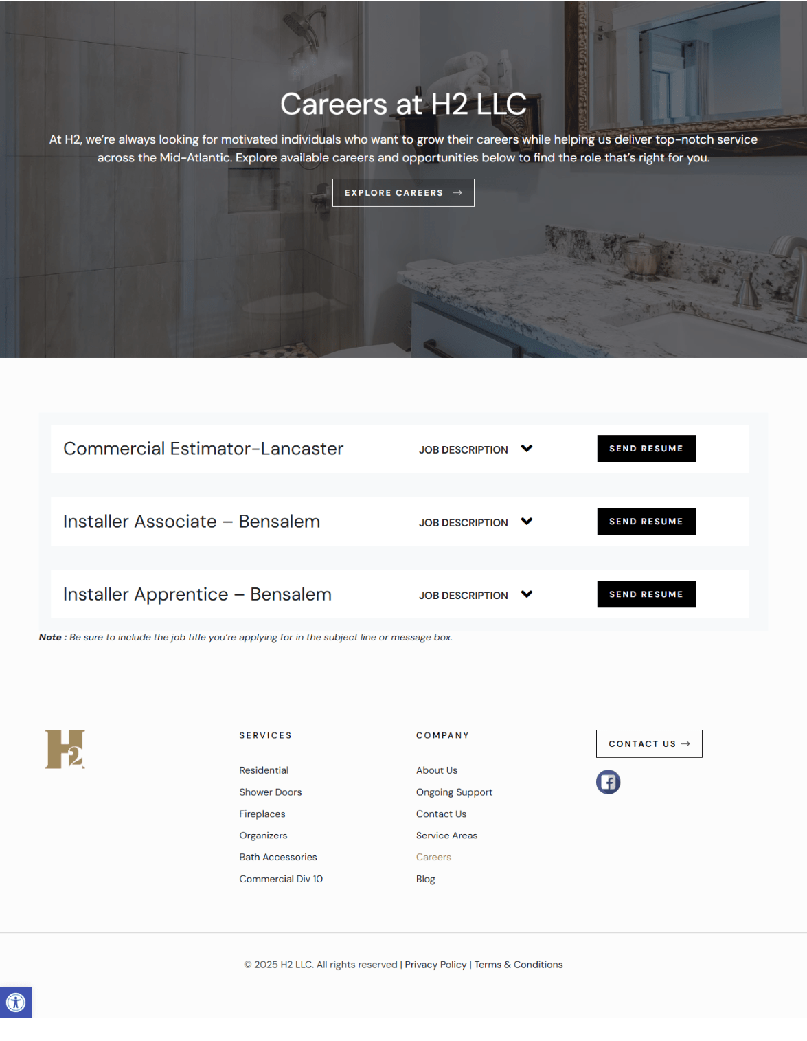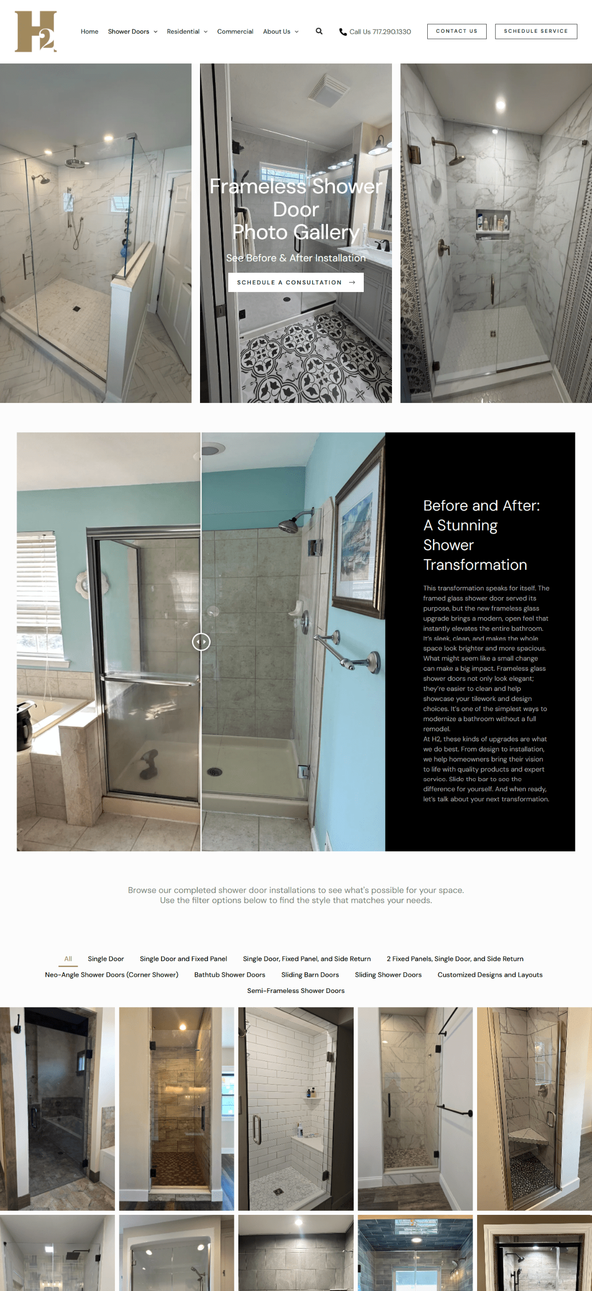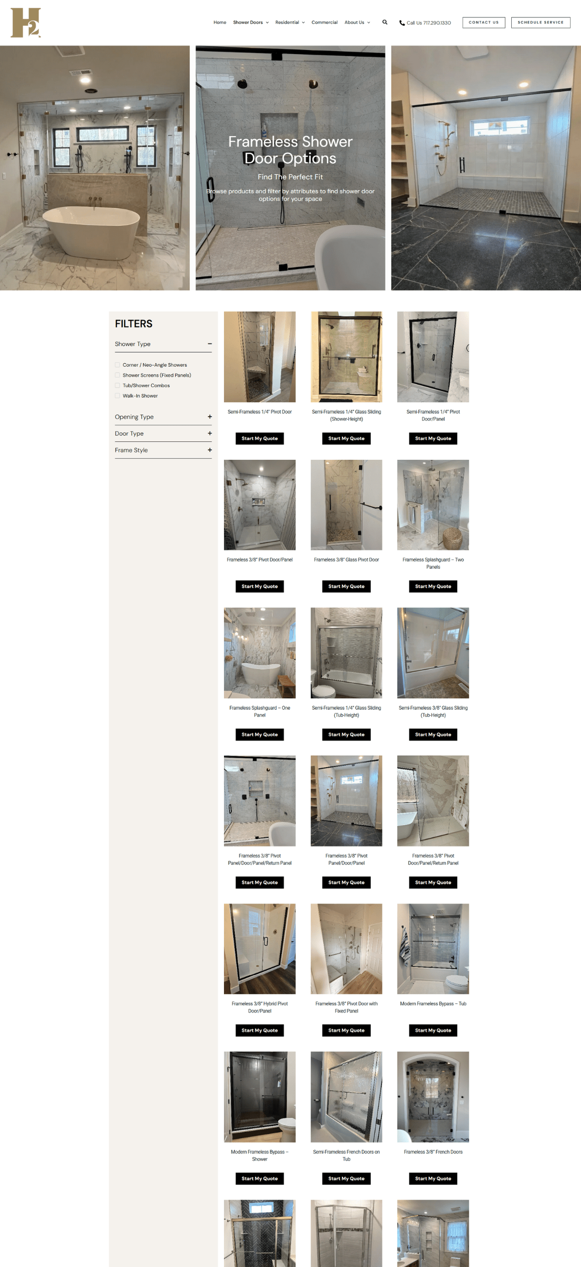 The goal was to design a clean, user-friendly page that showcased the company’s shower door options while guiding visitors through the process of requesting a free quote. To enhance usability, we added a filtering system that allowed customers to browse shower door styles by specific features. In the second phase, we developed a Frameless Shower Door Gallery to highlight completed projects and a Careers page to display current job openings. The client was thrilled with the final result, noting how much easier it was for customers to explore and engage with their offerings.