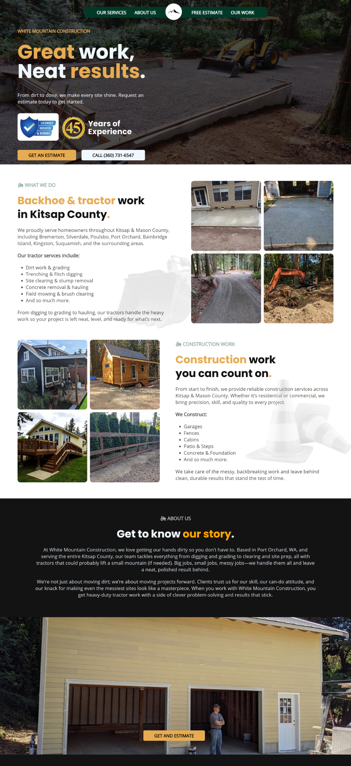 Construction company serving the entire Kitsap County, Washington, United States.